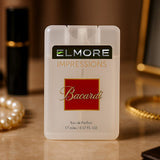 Enter a realm of opulence with ELMORE IMPRESSION – BACARDI ROUGE, a luminous and poetic fragrance that mirrors the brilliance of Baccarat Rouge 540. The scent unveils an ethereal blend of saffron and jasmine, unfolding into a heart of amberwood and ambergris, and finishing with an elegant trail of fir resin and cedar.
